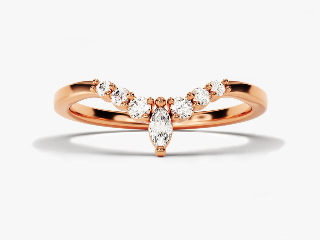 Taş Bilgisi: 1 adet 2.00 x 4.00 mm ölçülerinde markiz kesim, 2 adet 2.00 mm, 2 adet 1.70 mm, 2 adet 1.50 mm çapında yuvarlak kesim taş (0.25 CT)