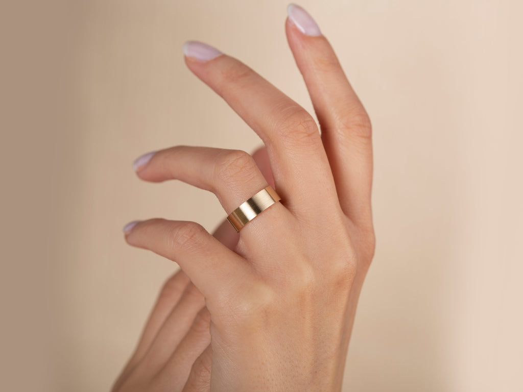Düz Mat Alyans, düz yüzeyi ve sade dokusuyla stilinize modern bir dokunuş yapıyor. Yuvarlak hatlar yerine daha net bir form arayanlar için ideal olan bu model, hem dayanıklı yapısı hem de parmağı yormayan konfor odaklı tasarımıyla, günlük hayatınızın her anına uyum sağlar.
