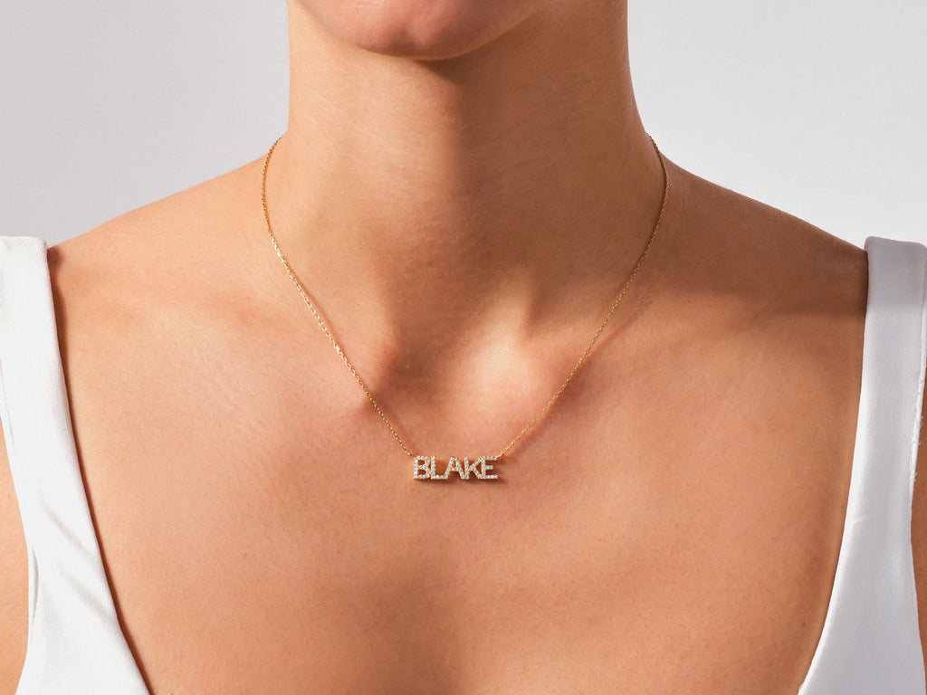 Block İsim Kolye, sevdiğiniz bir ismi veya kelimeyi üzerinizde taşımanın en ışıltılı yolu. Harflerin üzerindeki taş detayları, 14 ayar altına hareket katıyor. Günlük hayatta rahatça kullanabileceğiniz, şık ve modern bir kolye.