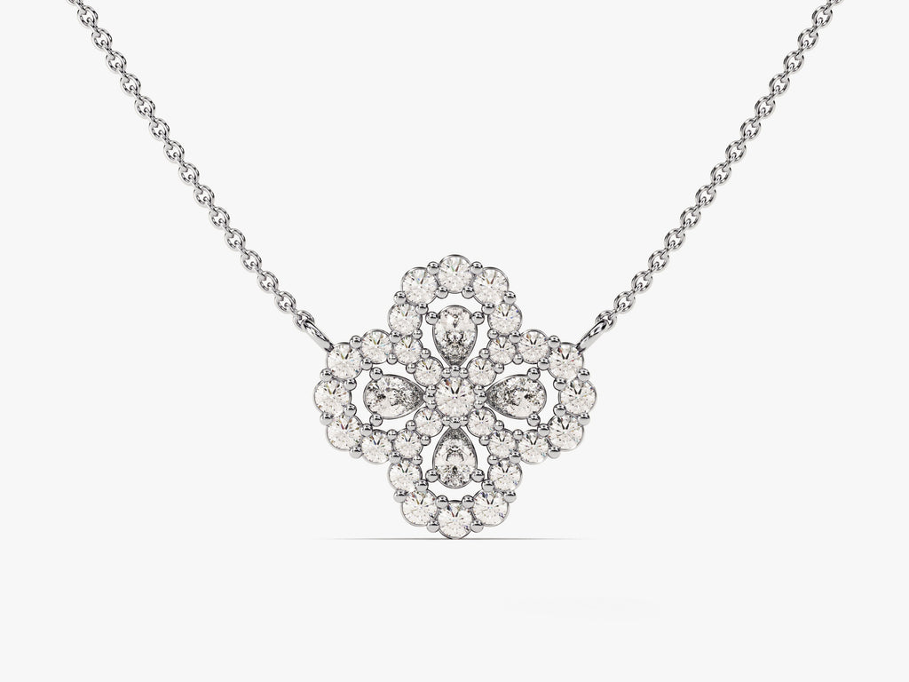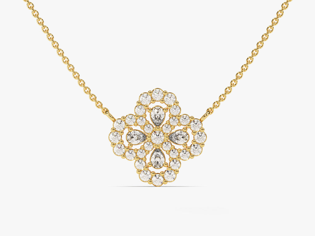 Floral Cluster Kolye, ince işçilikle tasarlanmış çiçek figürlerinden oluşan bir dizayna sahip. 14 ayar altın üzerine işlenen bu detaylar, kolyeye hareketli ve doğal bir görünüm kazandırıyor. İnce zincirle tamamlanan, zarif bir tasarım.