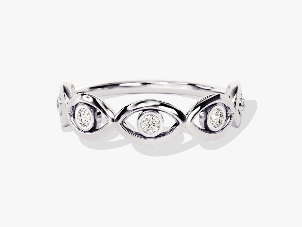 Nazar boncuğu motifini modern bir yorumla sunan Half Eternity Evil Eye Yüzük, pırlanta ışıltısıyla öne çıkıyor. 14 ayar altın üzerine işlenen ince detaylar, parmağınızda zarif bir görünüm yaratır. Günün her anında kullanabileceğiniz şık bir tamamlayıcıdır.