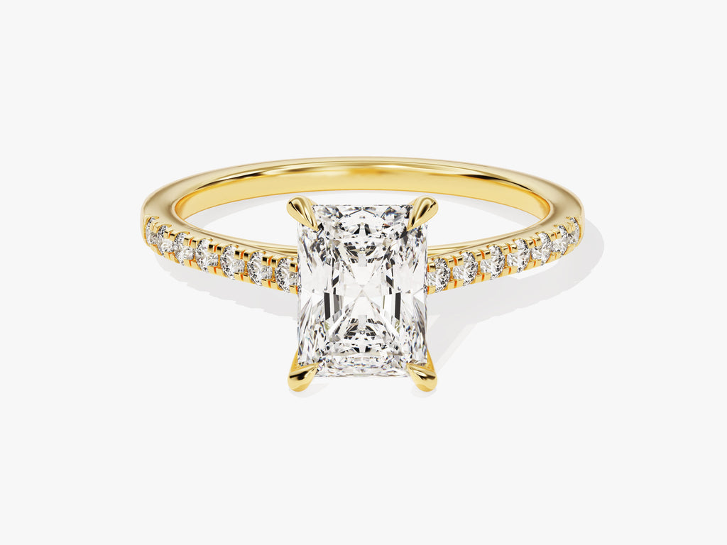 Katedral Radiant Kesim Yüzük , modern sadelik ile zarif detayların dengelendiği sofistike bir tasarıma sahiptir. Işığı doğal bir parlaklıkla yansıtan merkez taşı, yüzüğün temiz hatları ve özenli işçiliği ile uyum içinde durur. Günlük kullanımda rahat, özel anlarda ise etkileyici bir duruş sunar.