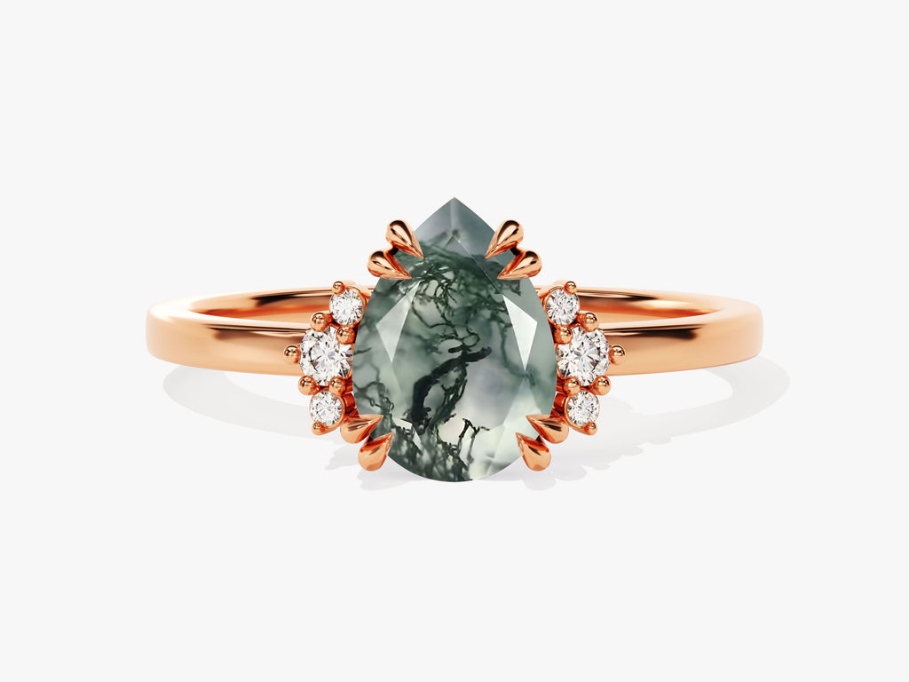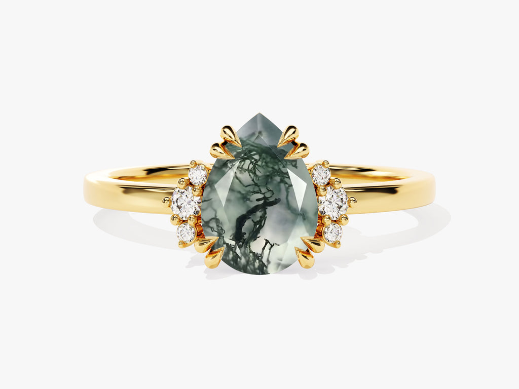 Pear Moss Agate Engagement Ring with Round Sidestones