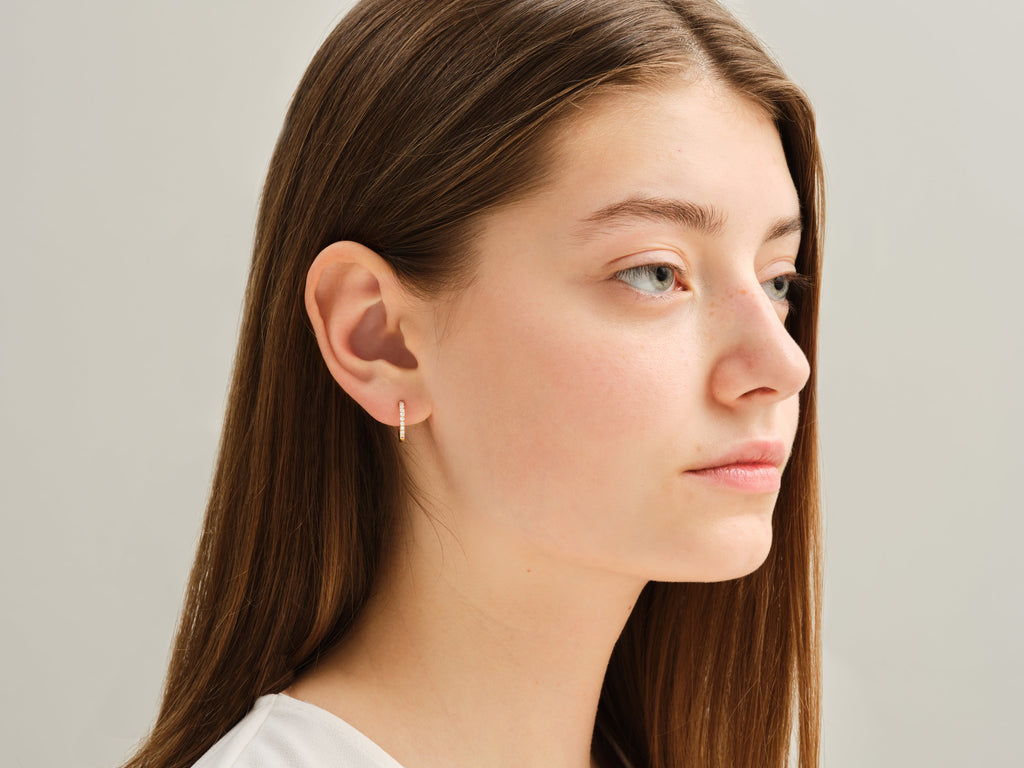 Bu 14 ayar altın Pırlanta Huggie Küpe, kaliteli 14 ayar altın halka ve güvenle yerleştirilmiş pırlantalarla uzun ömürlü olacak şekilde tasarlanmıştır. Hem şık hem de sade bir tasarıma sahip olan bu küpeler, her türlü etkinlik için rahatlıkla kullanılabilir.Özellikler:Taş Seçenekleri: Lab Pırlanta ve MozanitTaş Kesimi: YuvarlakTaş Boyutu: 20 x 1,50 mmTotal Karat: 0,30 ct tw (Her iki küpe için)Mozanit / Lab Pırlanta Rengi: D/E / F+Genişlik: 1,70 mmİç Çap: 10,00 mm