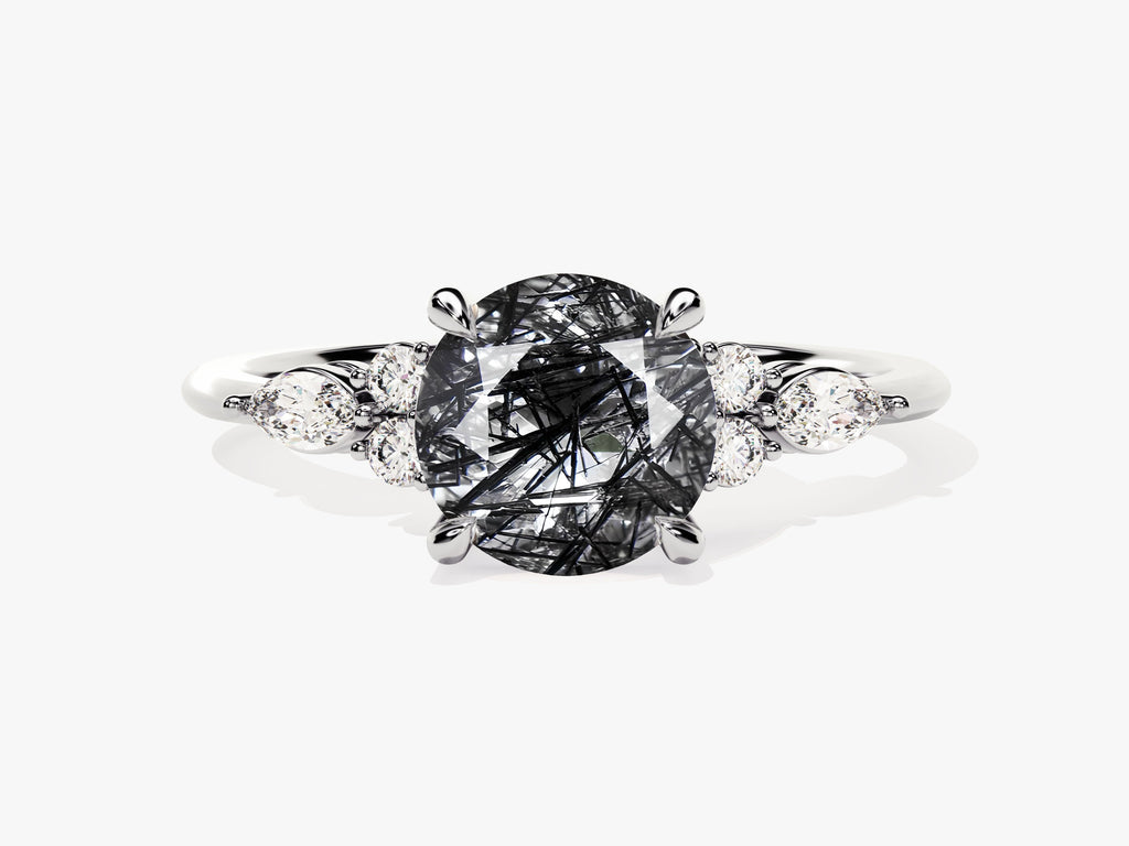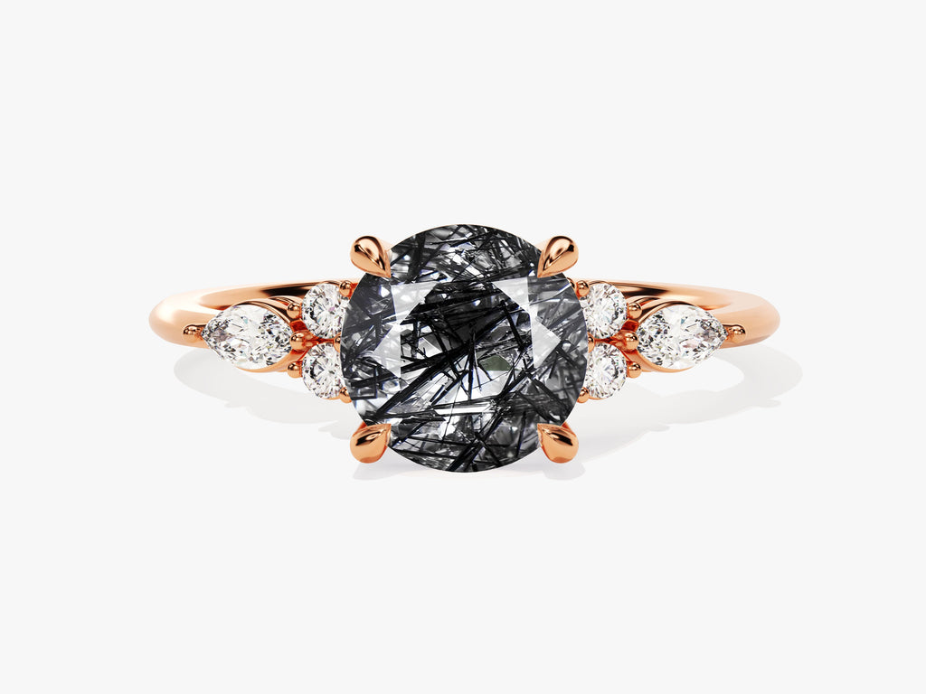 Round Black Rutilated Quartz Engagement Ring with Sidestones