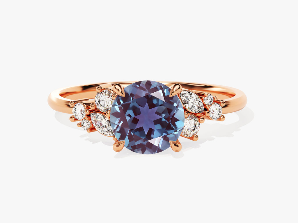 Round Lab Alexandrite Engagement Ring with Cluster