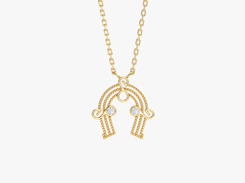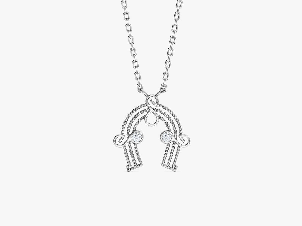 Kıvrımlı hatları ve mikro dokulu yüzeyiyle öne çıkan bu kolye, çift taş detayıyla modern bir denge sunuyor. Hareketli formuna katılan bu zarif ışıltı, tasarımı hem tek başına kullanım hem de çoklu kombinler için ideal kılıyor.