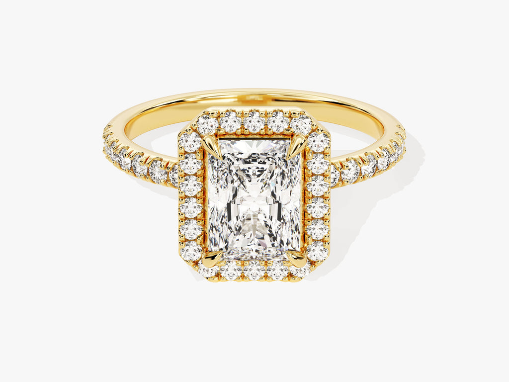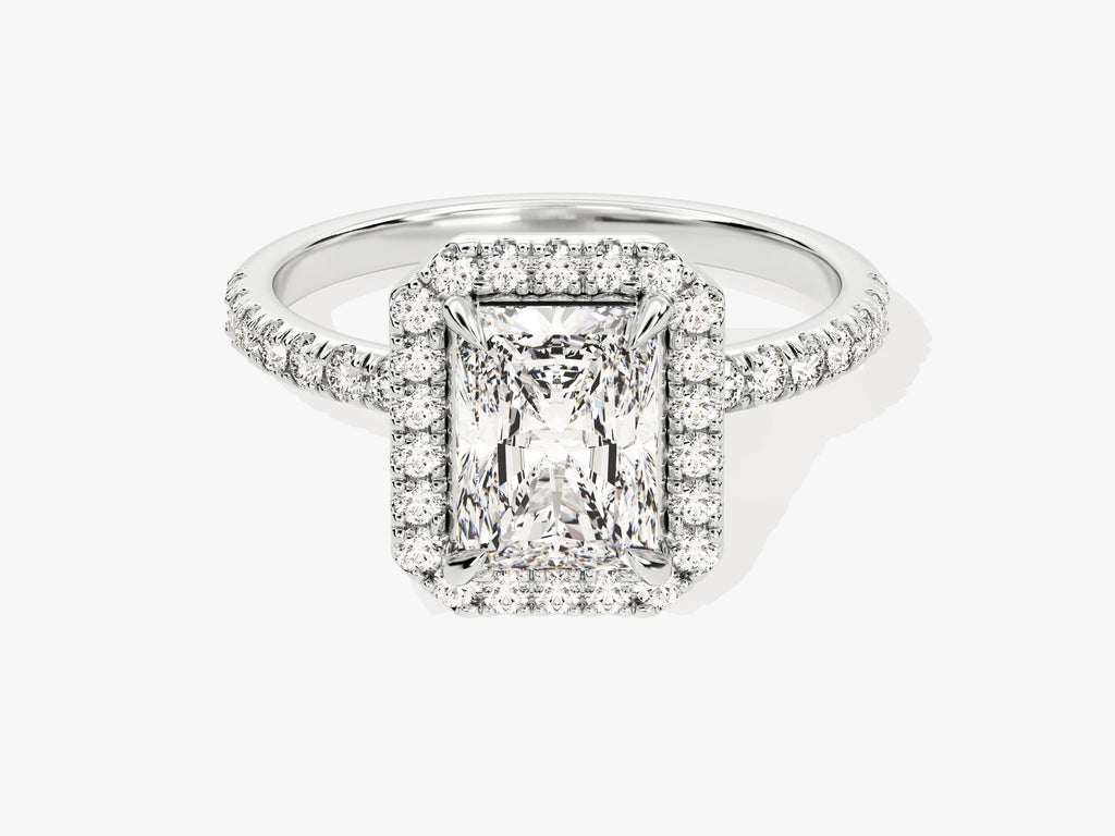 YAN TAŞLI RADIANT KESİM HALO YÜZÜK